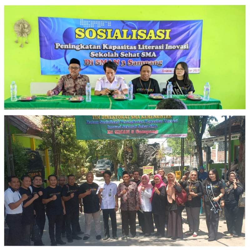 Sampang, 27 September 2023 - SMAN 3 Sampang mendapat giliran kunjungan Direktorat SMA Kemendikbudristek. Dalam hal ini, Direktorat SMA Kemendikristek menyampaikan garis penting terkait Peningkatan Kapasitas Literasi Inovasi Sekolah Sehat SMA.