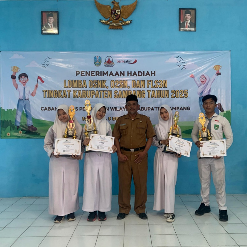 Sampang, 9 Desember 2025 – Dinas Pendidikan Cabang Dinas Wilayah Kabupaten Sampang secara resmi mengundang para pemenang Lomba OSNK, O2SN, dan FLS2N Tingkat Kabupaten Tahun 2025 untuk menghadiri acara penyerahan penghargaan yang diselenggarakan pada hari Selasa, 9 Desember 2025 bertempat di Aula R.P. Moh. Noer, Cabang Dinas Pendidikan Wilayah Kabupaten Sampang.