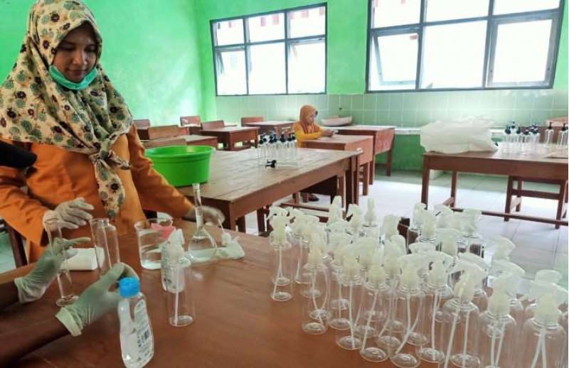 "Dengan pengadaan handsanitizer dan sabun diharapkan seluruh warga sekolah membiasakan hidup bersih. Semoga penyebaran virus ini bisa dihentikan dan pembelajaran dapat kembali normal", ujar Ahmad Saifuddin, S.Pd.