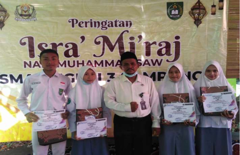 SMAGA - Pada Rabu 31 Maret 2021, dilaksanakan sebuah acara penyerahan hadiah kepada pemenang lomba peringatan Isra' Mi'raj yang dilaksanakan secara daring. Lomba yang berlangsung pada tanggal 15 Maret hingga 20 Maret tersebut, diikuti oleh seluruh siswa SMA Negeri 3 Sampang.