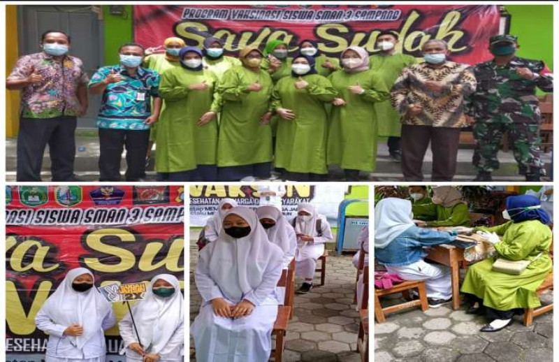 Selasa, 14-9-2021, pukul 08.00 WIB, SMA Negeri 3 Sampang bekerja sama dengan Puskesmas Banyuanyar Sampang mengadakan Semarak Vaksin 2 SMA Negeri 3 Sampang.” Kegiatan ini merupakan wujud dukungan sekolah terhadap program pemerintah bebas dari wabah Covid-19. Adapun, jumlah petugas kesehatan dari Puskesmas Banyuanyar yang datang ke SMA Negeri 3 Sampang berjumlah sebanyak 9 orang ditambah 1 orang dari TNI,  di mana 1 orang  mendata kelengkapan administrasi siswa  yang dibantu TNI dan 1 guru dari pihak sekolah, 4 orang bagian Screening, 2 orang sebagai pemberi suntikan vaksin, dan 2 orang pencetak tanda bukti  vaksin 2 dibantu oleh staf tata usaha sekolah.
